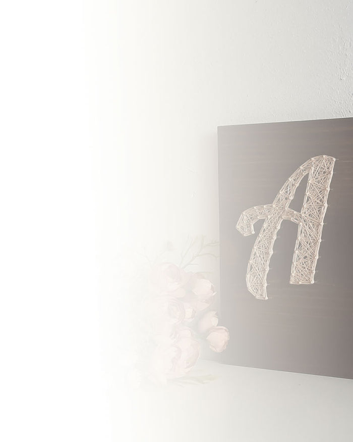 Ob die Initialen des Paares, der gemeinsame Nachname oder beide Vornamen ausgeschrieben: ein Fadenbild mit Namen ist ein Geschenk, das sofort persönlich wirkt und nie doppelt auftaucht.