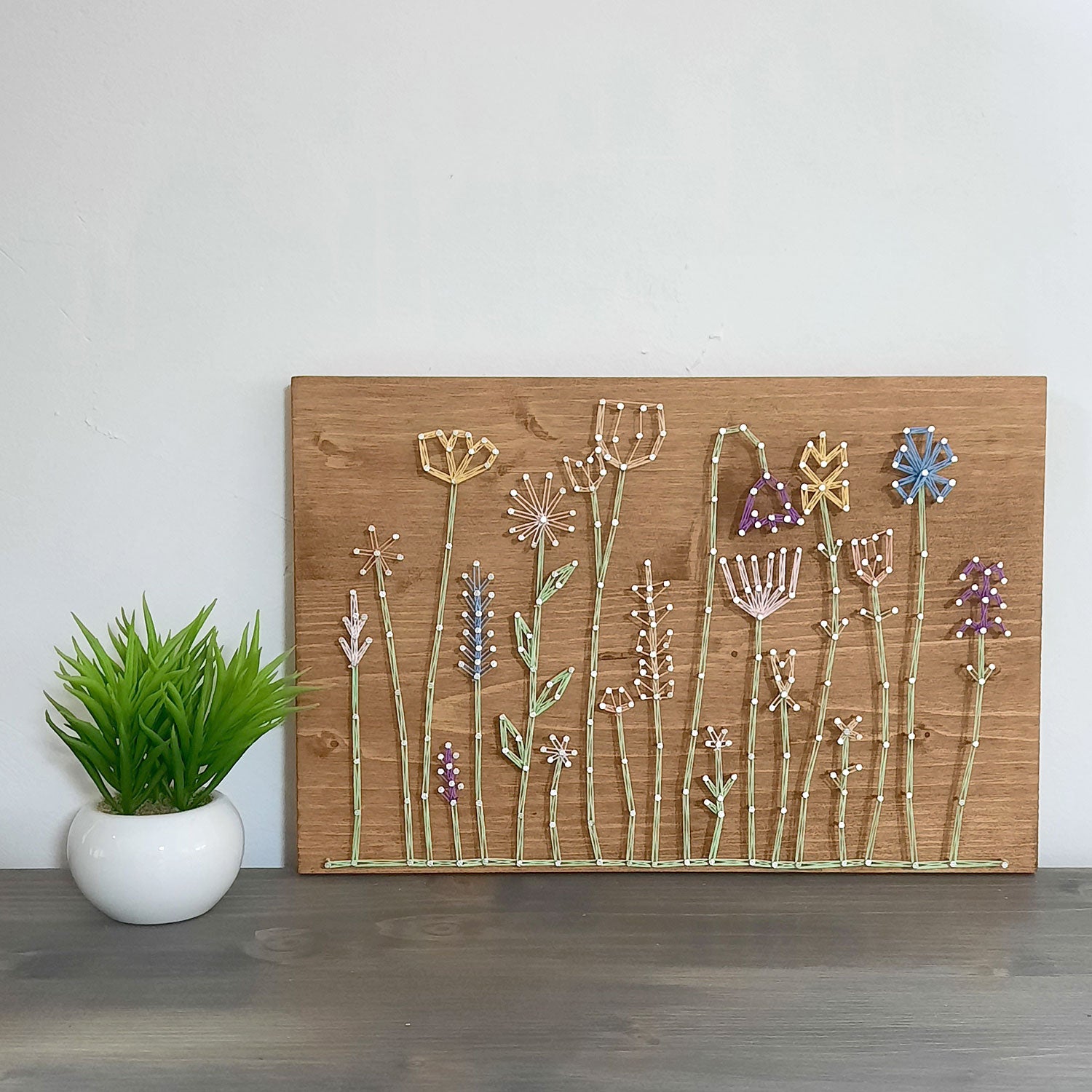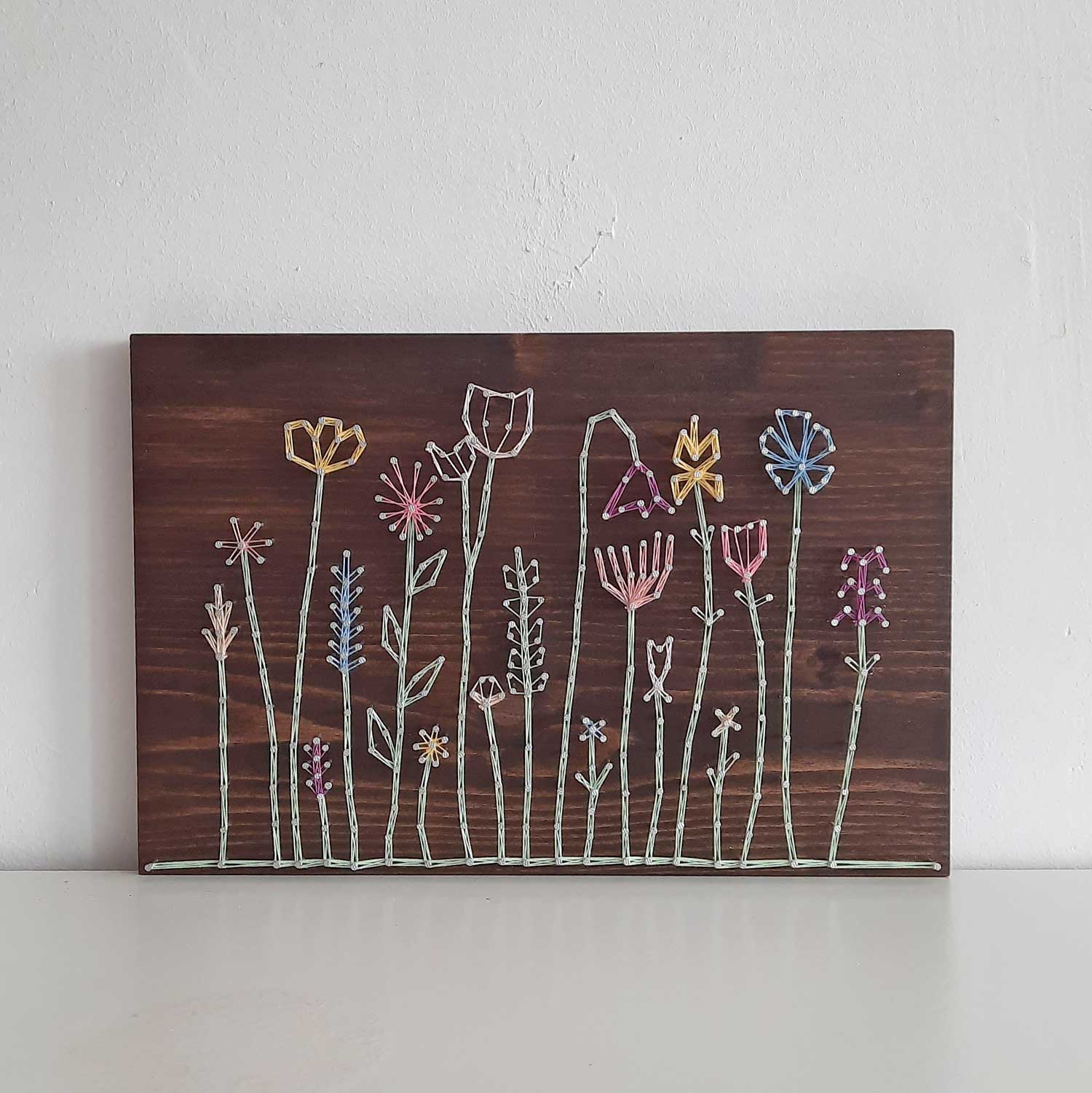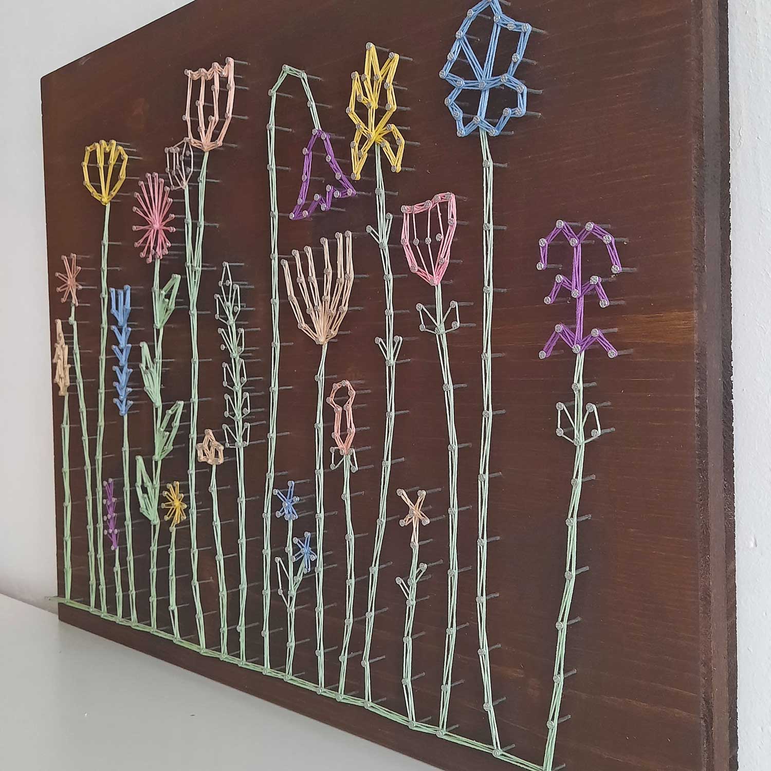 Dieses handgefertigte Fadenbild zeigt eine leuchtende Blumenwiese, die jeden Raum mit Farbe und Lebensfreude erfüllt. Ein einzigartiges Kunstwerk, das die Schönheit der Natur festhält und positive Energie verbreitet.