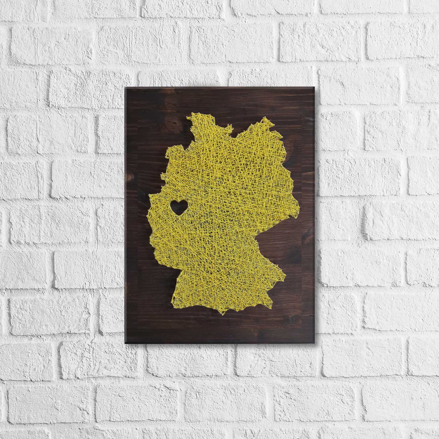 Die handgemachte String Art von Fadenbild ist wirklich einzigartig und persönlich. Egal, ob du es selbst mit unserem Do-It-Yourself-Set anfertigst oder bereits fertig bei uns bestellst, es wird immer ein Unikat sein. Du kannst die Größe, die Holzsorte und die Fadenfarbe nach deinem Geschmack wählen und dich auf eine individuelle String Art als Deko-Highlight freuen. Ob zum Aufhängen in deinem Zuhause oder als besonderes Geschenk – mit dem Fadenbild “Deutschlandkarte” zeigst du deine Heimatverbundenheit jeden Tag.