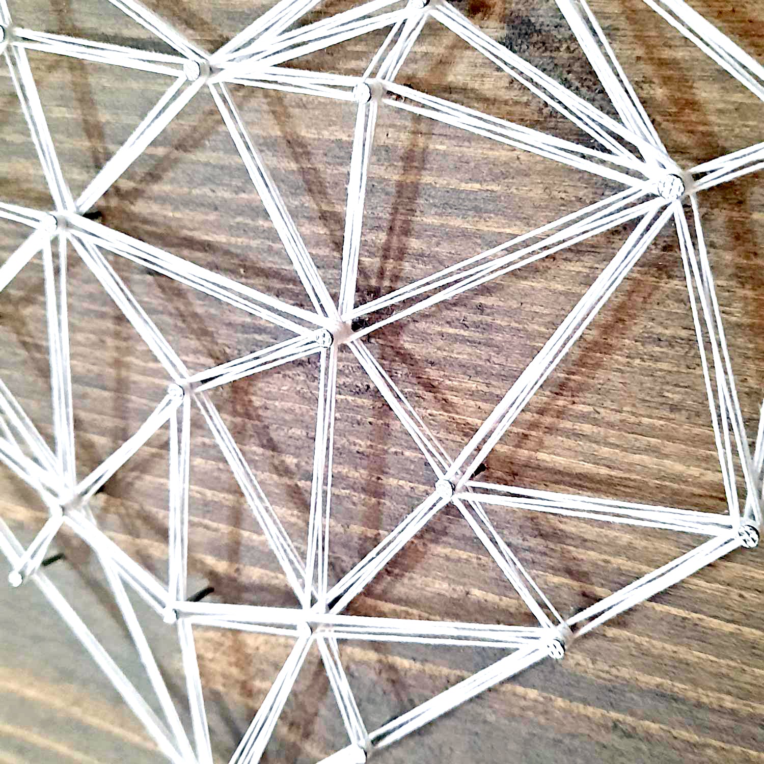 Durch das feste Holzbrett und die eng gesetzten Nägel ist das Ergebnis sehr stabil und recht unempfindlich. Du kannst das Fadenbild direkt aufhängen. Ein Bildaufhänger liegt jedem Set bei.