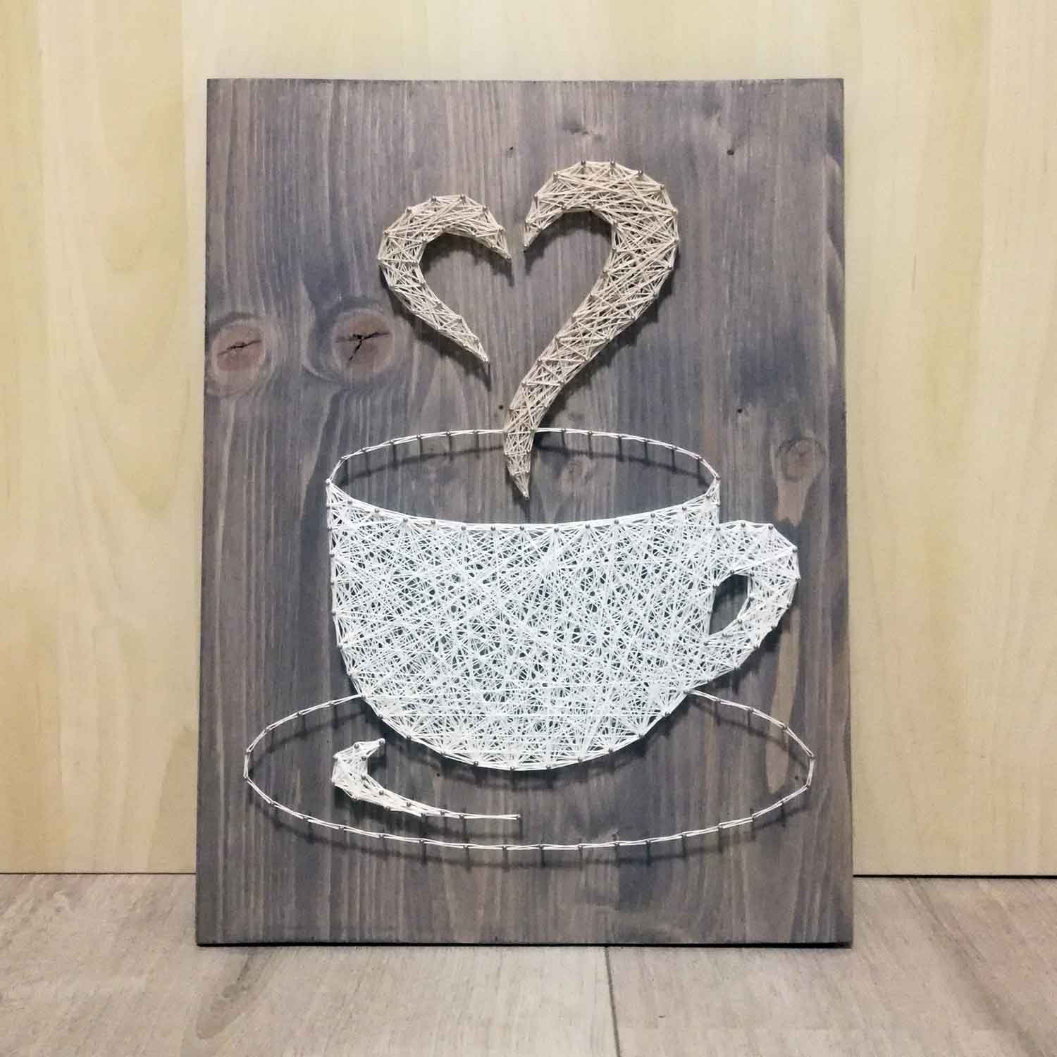 Du brauchst morgens als erstes deinen geliebten Kaffee? Oder du kennst jemanden, bei dem ohne Kaffee gar nichts geht? Dieses String Art Bild einer Kaffeetasse passt einfach in jede Küche. Oder du überraschst einen Kaffeejunkie mit diesem außergewöhnlichen und originellen Hingucker. Ob zum Geburtstag, zur Einweihung oder zu einer anderen Gelegenheit, die sich zu feiern lohnt: Mit diesem Fadenbild schaffst du ein ganz persönliches Erinnerungsstück.