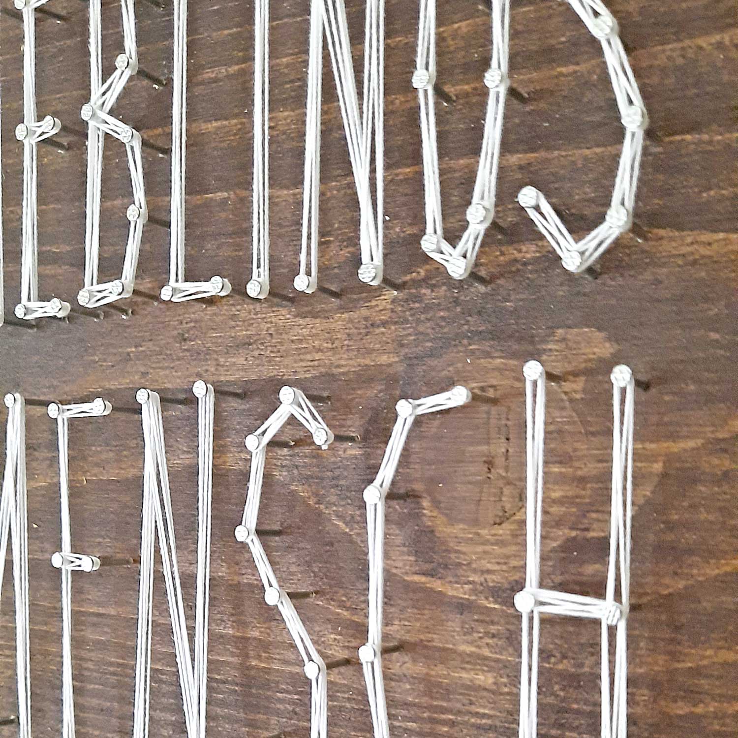 Durch das feste Holzbrett und die eng gesetzten Nägel ist das Ergebnis sehr stabil und recht unempfindlich. Du kannst das Fadenbild direkt aufhängen. Ein Bildaufhänger liegt jedem Set bei.