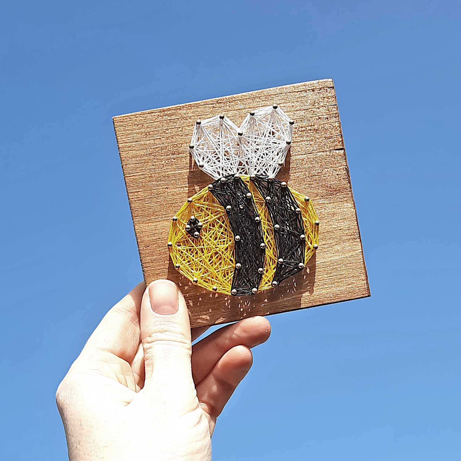Entdecke die Freude am Selbermachen mit unserem Mini-Fadenbild-Set "Süße Biene"! Auf nur 10x10 cm erschaffst du im Handumdrehen ein entzückendes Kunstwerk.