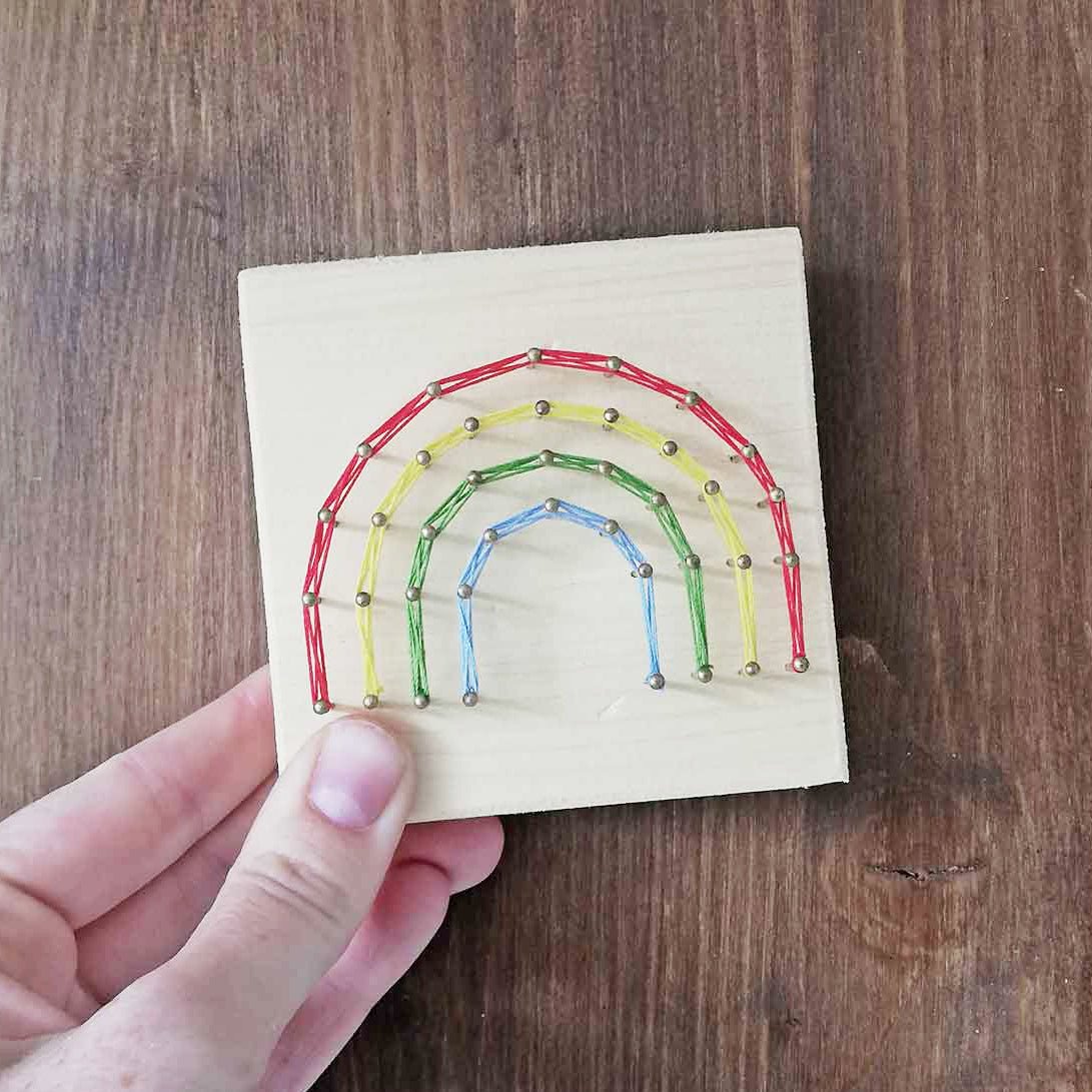 Kennst du ein kleines Wunder, das Farben liebt und gerne kreativ wird? Mit unserem Mini-Fadenbild-Set "Regenbogen" können auch die Kleinsten ihr eigenes kleines Glücksmoment erschaffen! Stell dir vor, wie ihre Augen leuchten, wenn sie ihren selbstgemachten Regenbogen präsentieren können. 😊