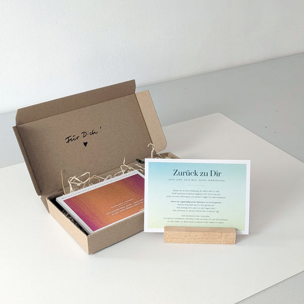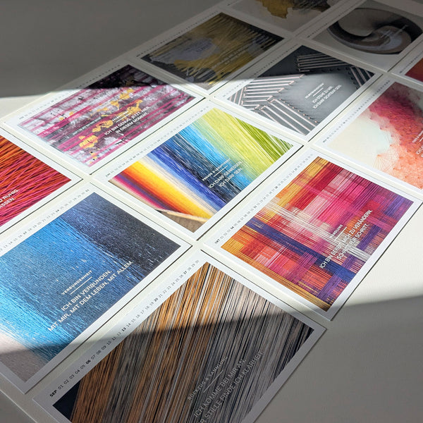 - 13 hochwertige Postkarten (12 Monate + Startkarte)